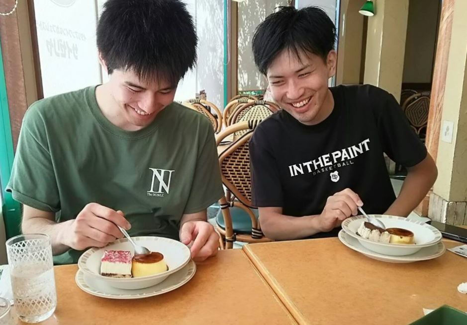休憩のたびにTシャツを着替える(8回くらい?)ショーくんに対し、着替えを忘れ びちゃびちゃTシャツ1枚でやりぬいた りゅーじくん。