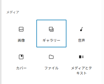 ブロック選択で、たぶん最初に表示されないと思うので、黒枠の「すべて表示」をクリックして一覧から「メディア」の項目内にある「ギャラリー」を選択します。