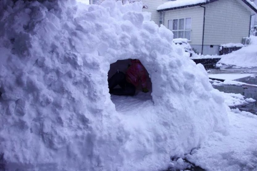 かまくらは踏み固めて作っていなかったので、2日くらいでペションと潰れてしまいました。