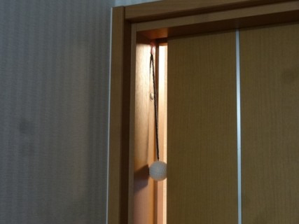 ゴルフボールに穴を開け、壁側にぶら下げるだけ!