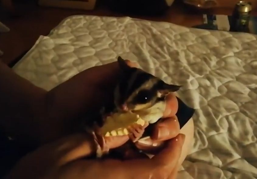 ● リコさんのYouTube動画「手の中でおやつを食べるフクロモモンガ」
