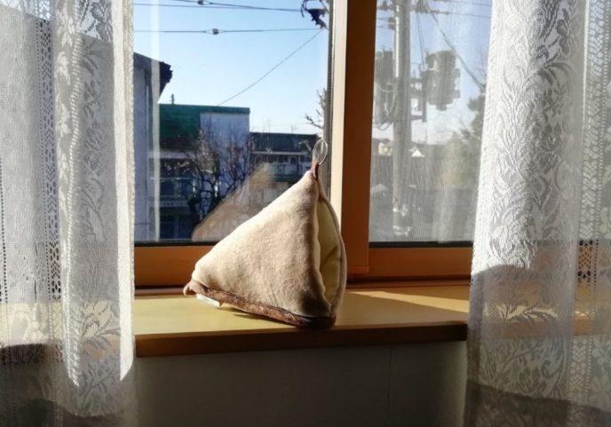 天気の良い日は三角ハウスに入ったまま窓際で日光浴。