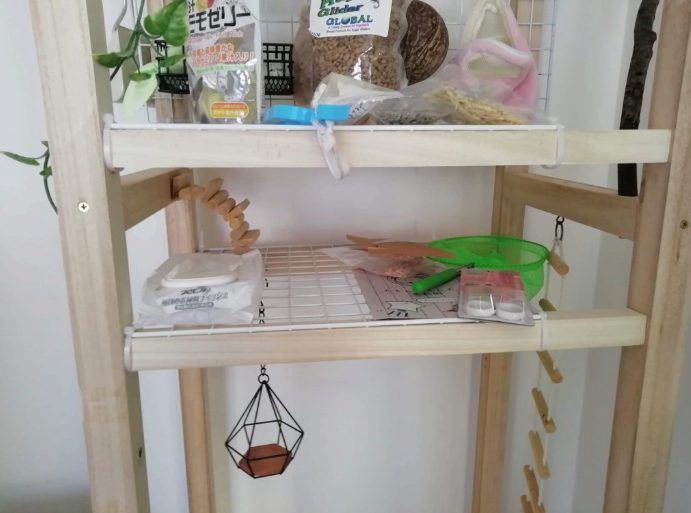 飼育用品やフードが思ったよりもスペースを取ってしまい、リコさんの遊ぶスペースがなくなってしまった。