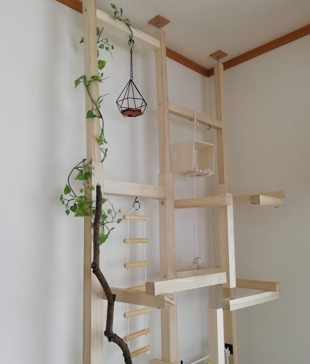本当は2号を横方向に増設し、壁一面にリコさんが遊び回れる空間をつくりたかったんだけど、