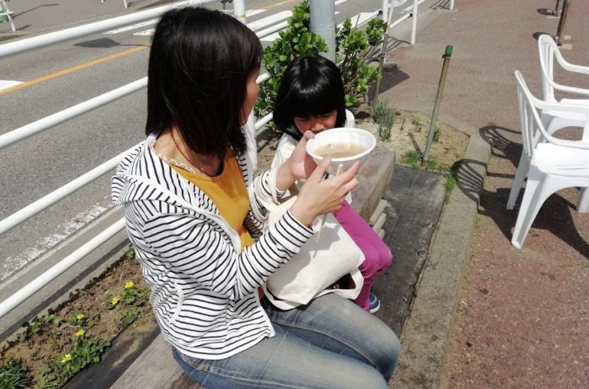 ママは1杯100円のカニ汁。