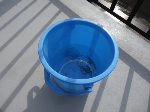 エアーポンプをバラして汚れを洗い流し、水を入れたバケツに浸しておく。