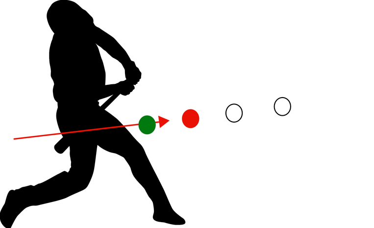 上の図のように「今だ!」と思った瞬間に赤いポイントにバットを振り出しても、