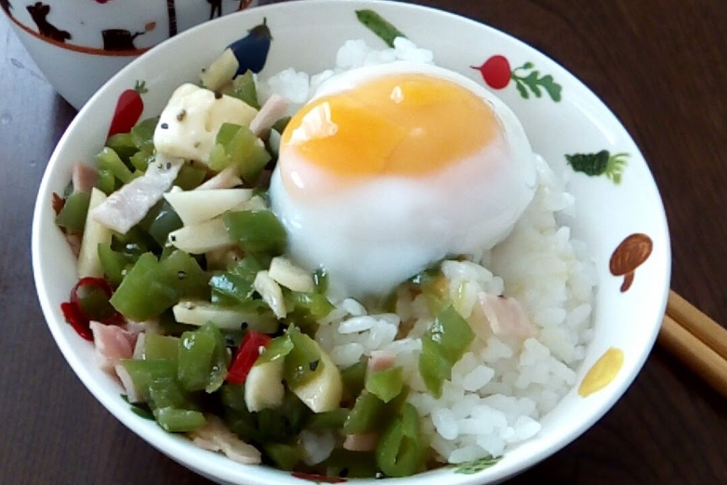 ニンニク香るピリ辛のオリーブオイルがご飯とピーマンに染みわたり、食欲のないときでもペロッといけちゃいます。