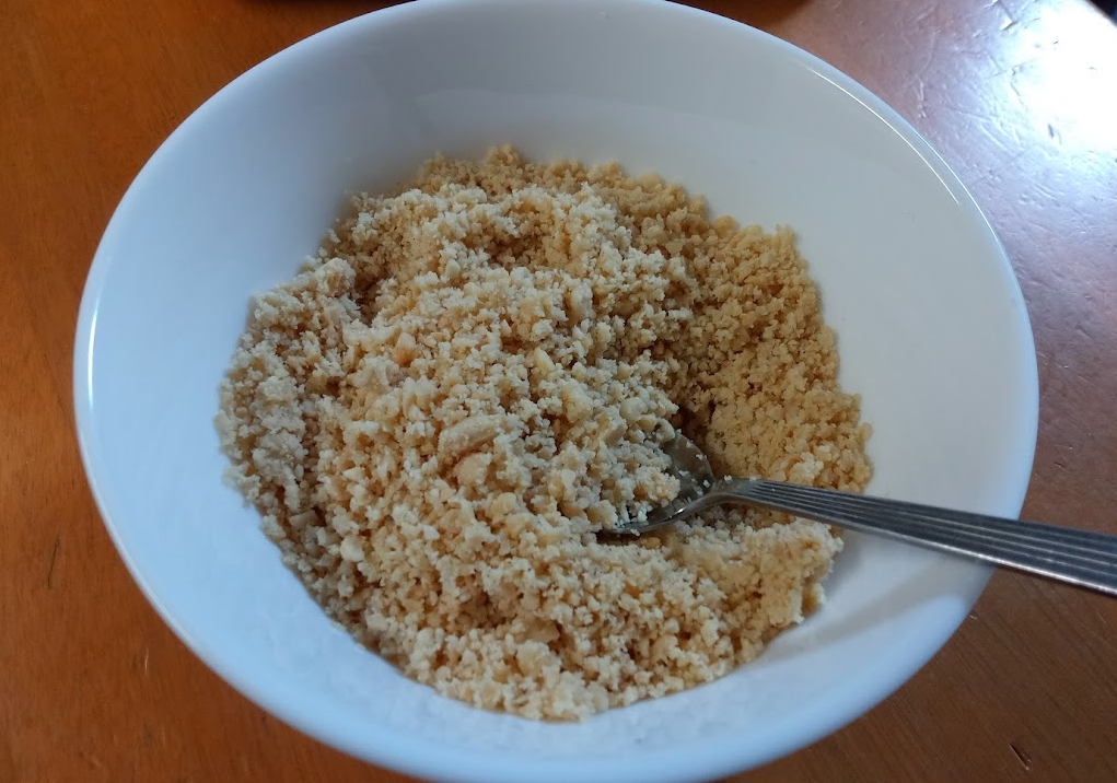 これまでずっと麺棒で根気よく砕いていましたが、ミキサーを使ったら一瞬でした。