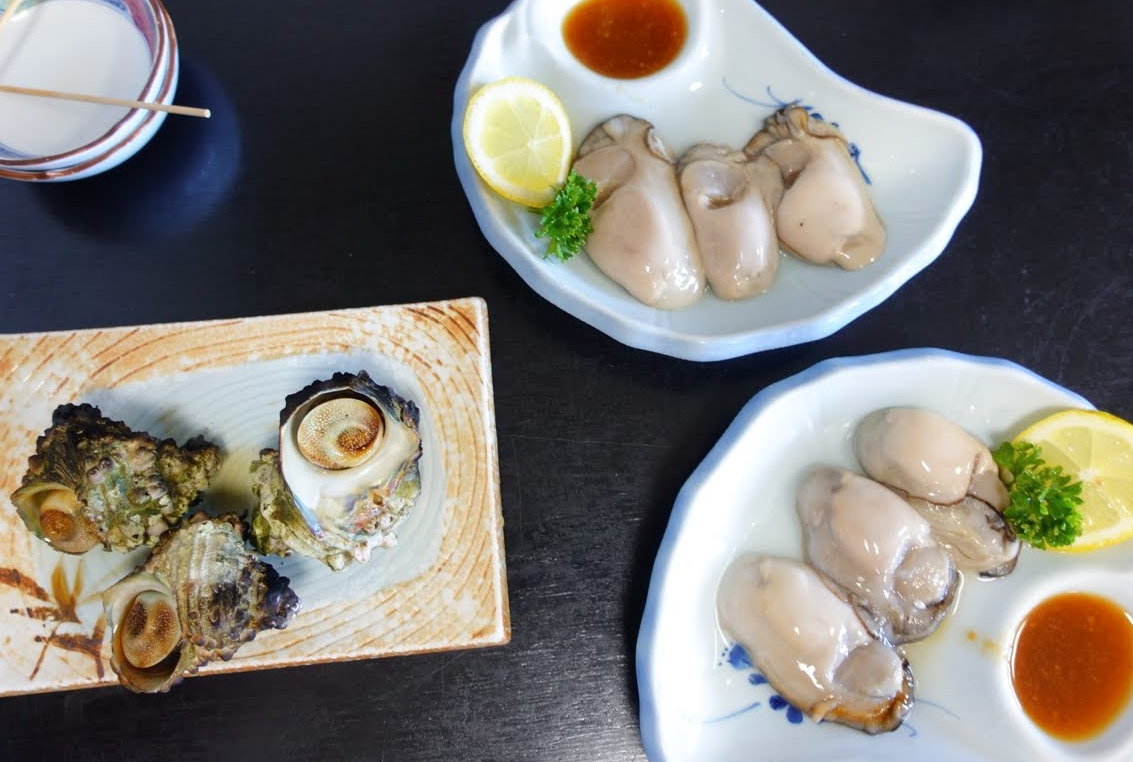 食べたメニュー「岩ガキ」「サザエのつぼ焼き」