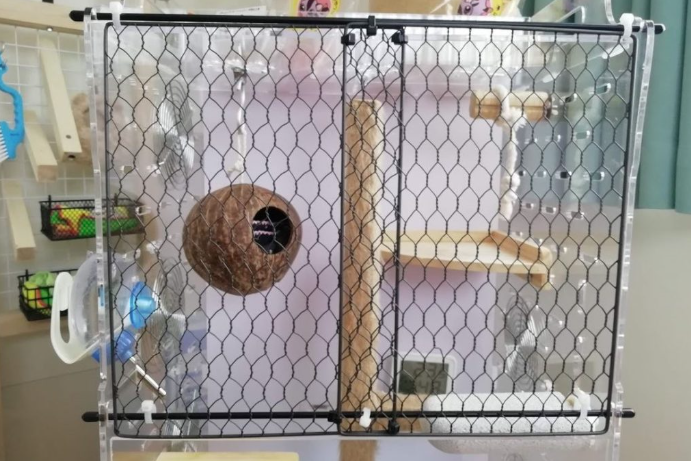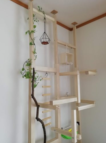 フクモモブログ 【フクモモDIY】登り木2号、ケージを広く使えるようにL字に改造してみた