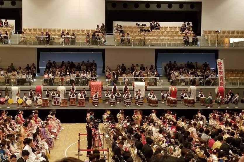 成人式で太鼓披露