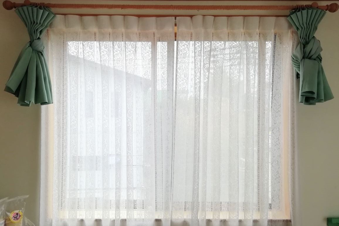 まず、リコさんを外に出すときは、遮光カーテンを軽く縛って短くしています。